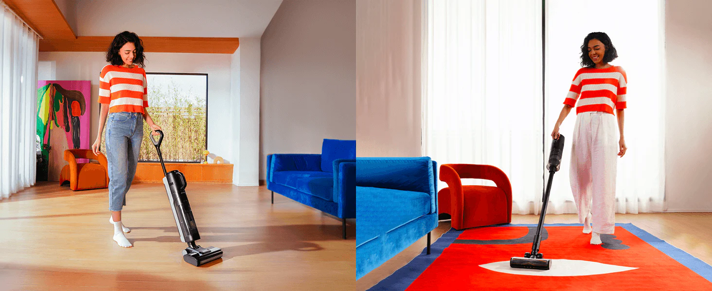 В комплекте — роликовая турбощётка с подсветкой, которая помогает видеть пыль даже в тёмных местах. Пылесос поддерживает влажную уборку: резервуар на 0,9 л позволяет протирать полы, не оставляя разводов.