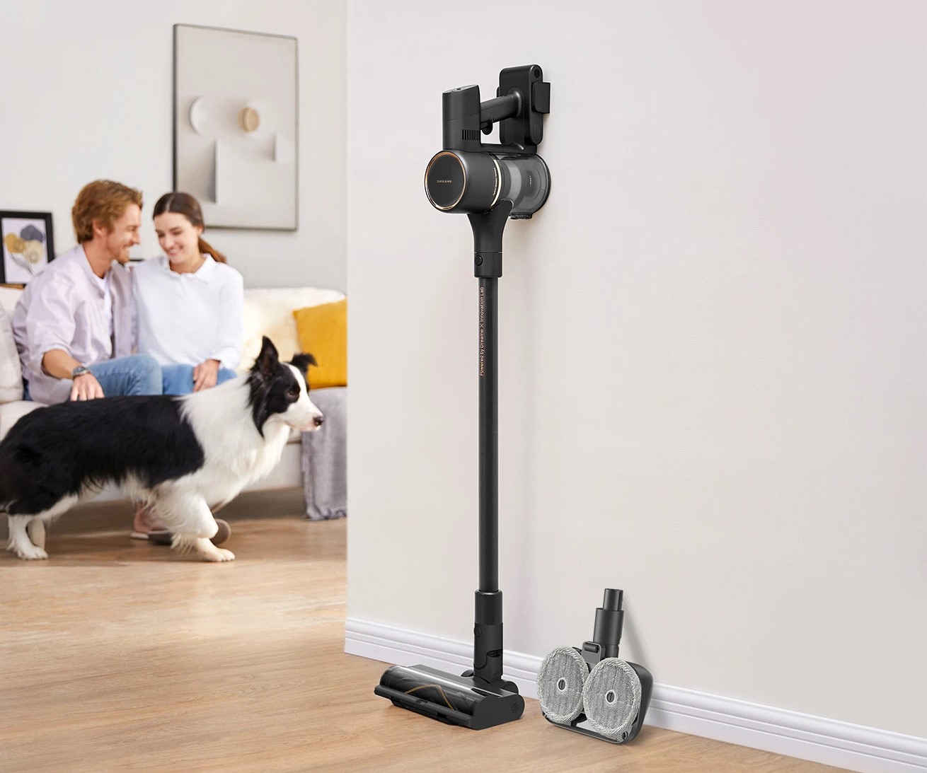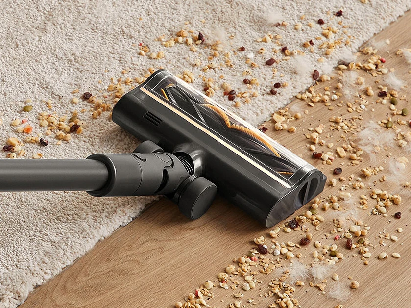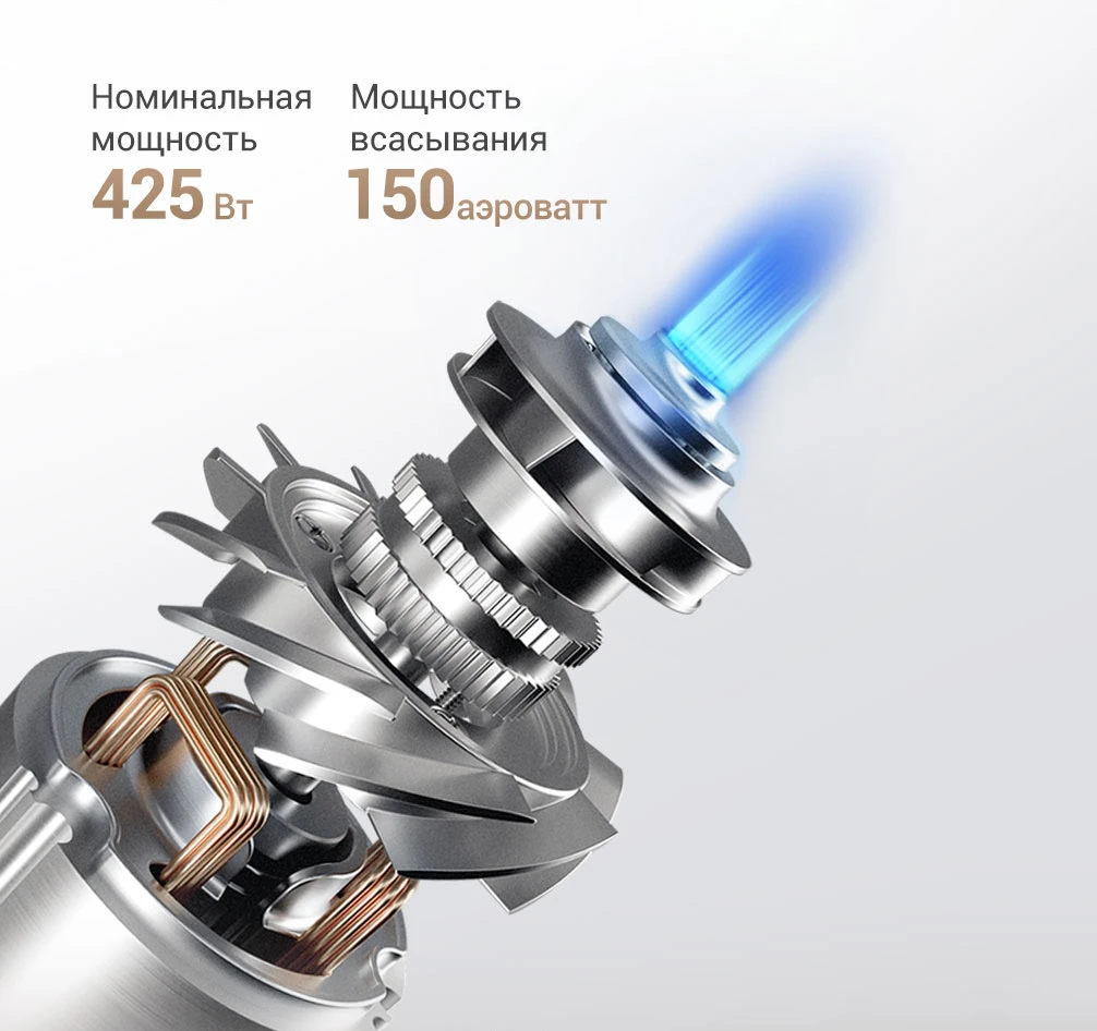 Эффективность уборки достигается благодаря высокоскоростному бесщеточному двигателю, обеспечивающему мощность всасывания 150 аэроватт (20000 Па) и надежное удаление волос, грязи, пыли и мелкого мусора.