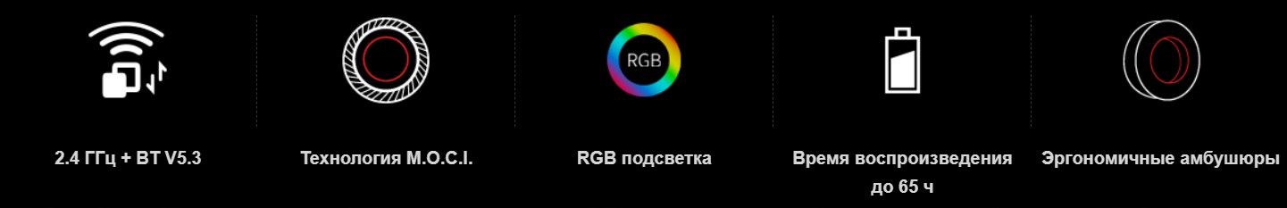 | Особенности, дополнительно | длина кабеля 1.5 м, разъем для зарядки USB Type-C, RGB подсветка |