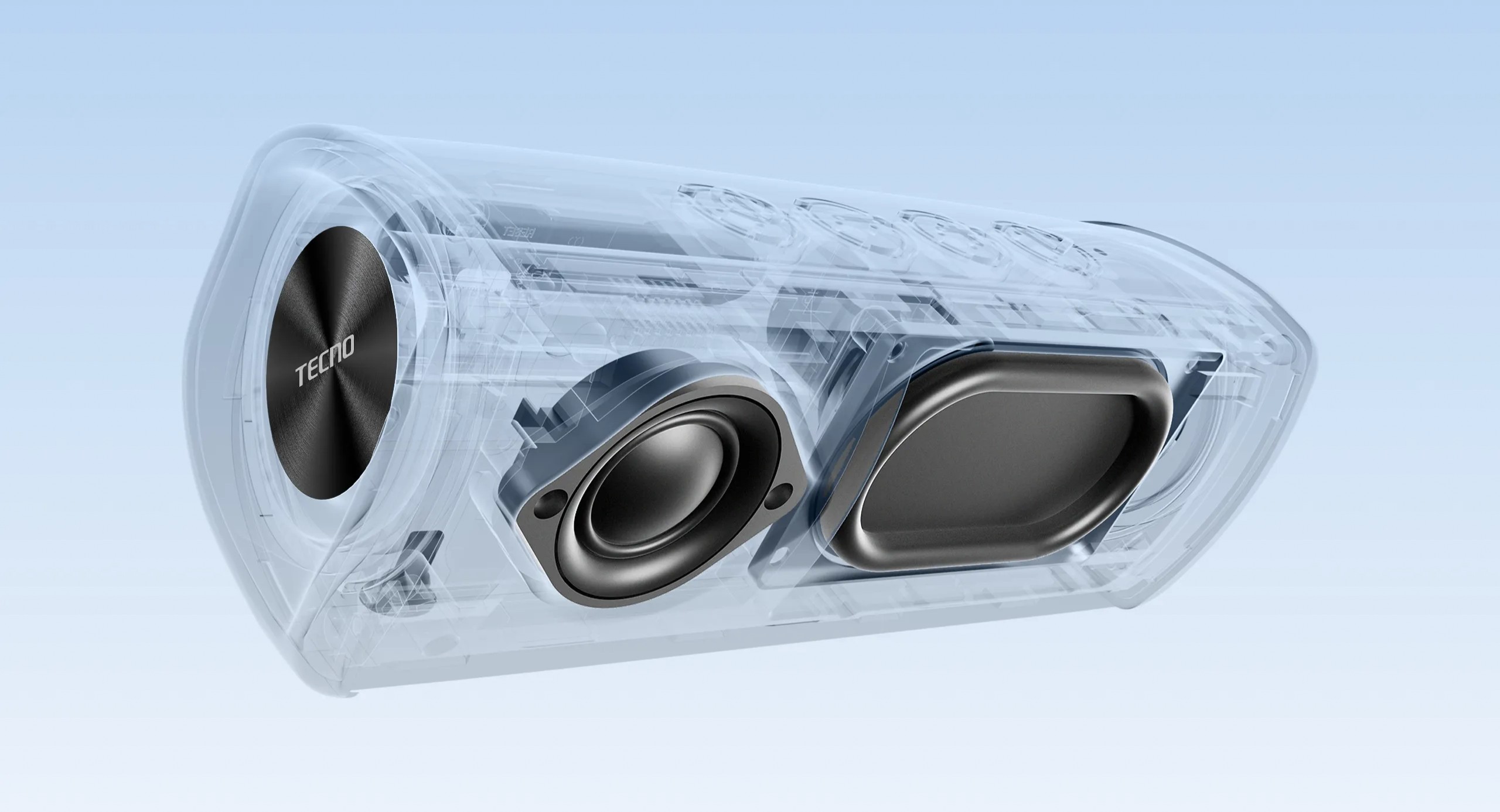 Несмотря на свои компактные размеры, Tecno S5 звучит так, будто перед тобой полноценная акустика. Три динамика суммарной мощностью 30 Вт создают объёмное Hi-Fi звучание, где низы ощущаются телом, а высокие частоты остаются кристально чистыми. Музыка звучит живо и эмоционально, будто ты на концерте.
