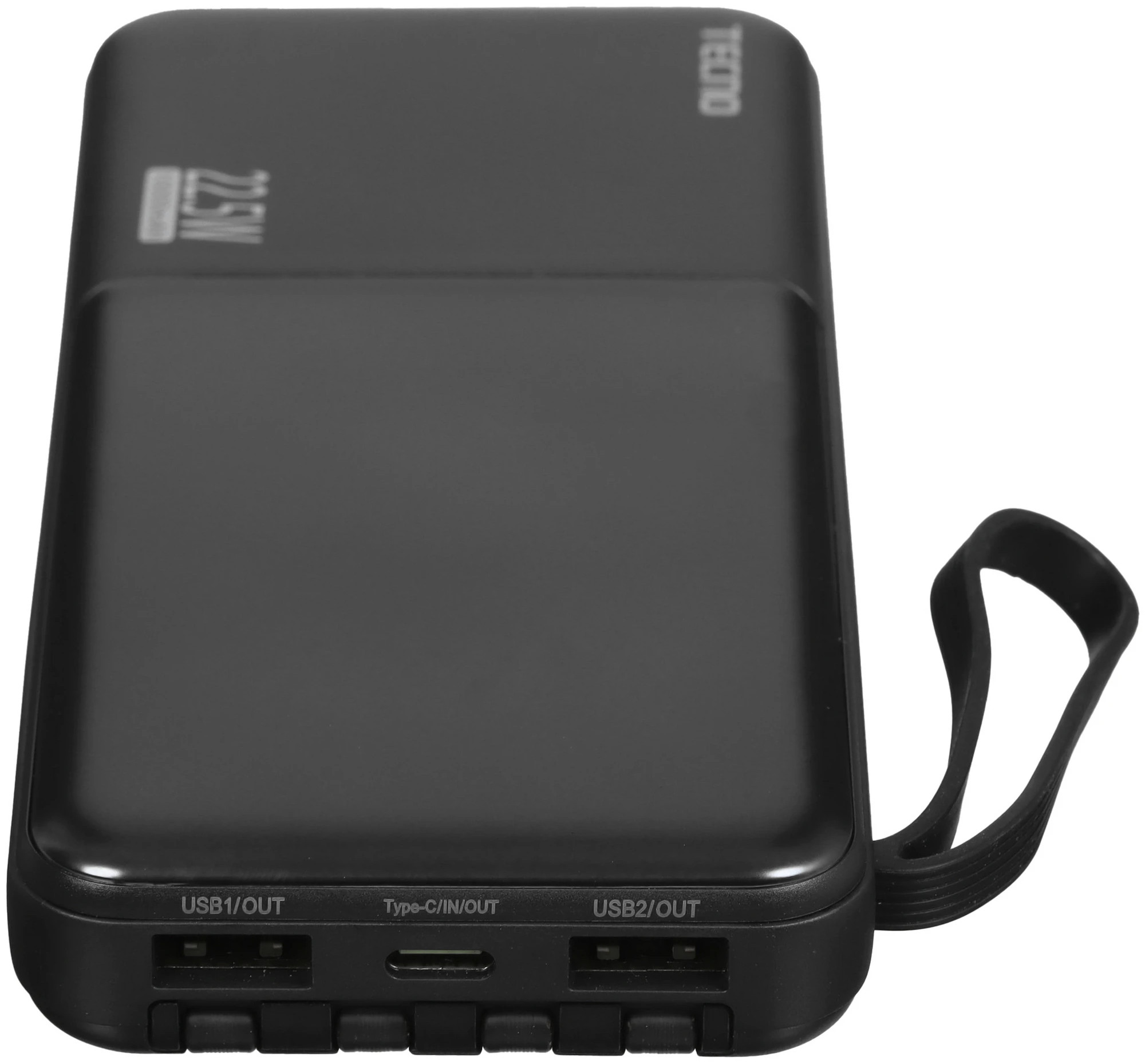 Tecno L101Q выполнен в лаконичном корпусе из прочного пластика. Устройство компактное — 14.6×6.75×2 см — и весит всего 236 граммов, поэтому легко помещается в сумку или карман рюкзака. Корпус не имеет рисунка и выглядит универсально, а встроенная подставка для смартфона делает использование пауэрбанка удобным в дороге или на рабочем столе.
