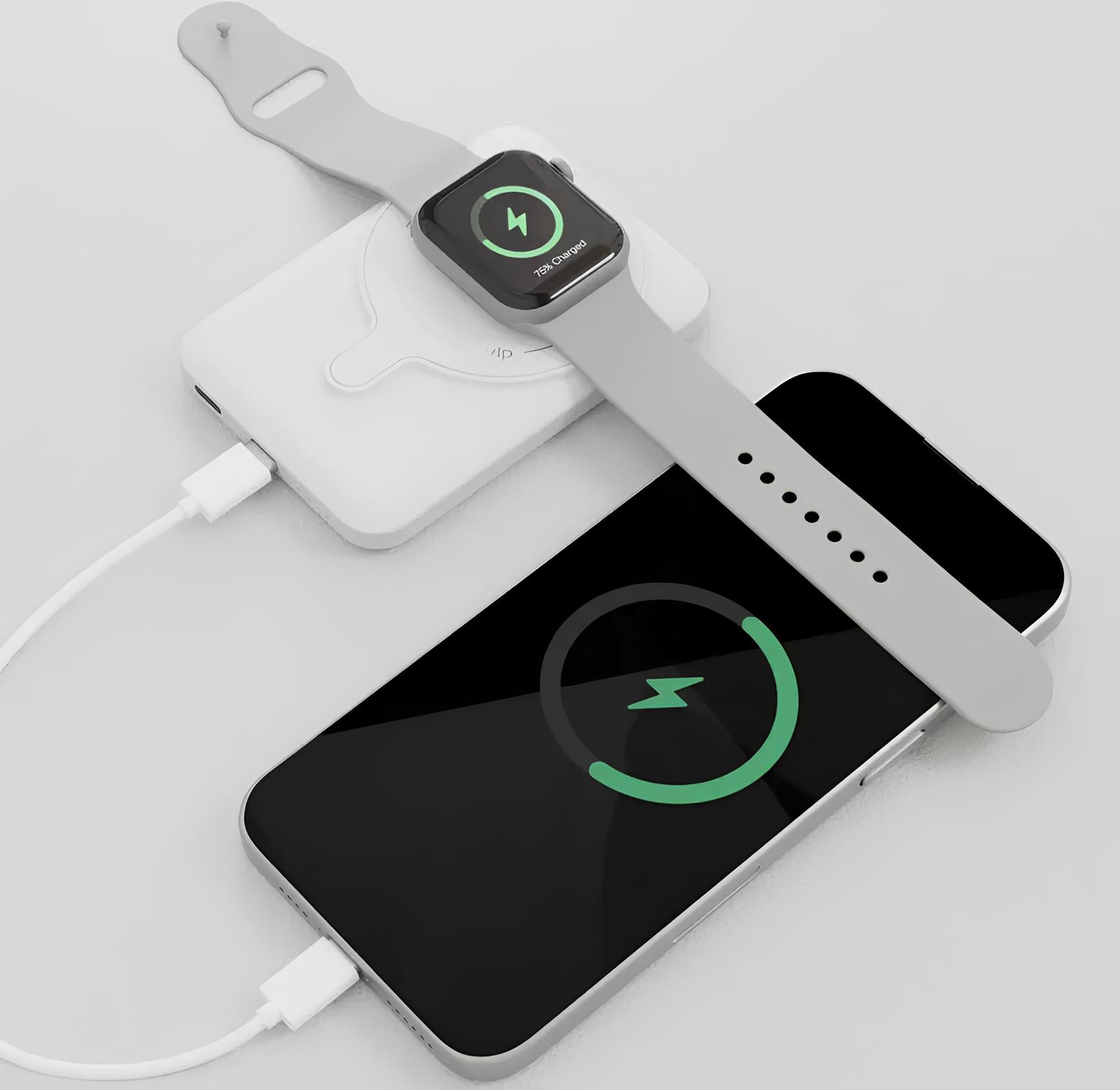 С внешним аккумулятором VLP Dual MagSafe больше не придется выбирать, какое устройство зарядить в первую очередь. Он позволяет одновременно заряжать смартфон с максимальной мощностью зарядки до 15 Вт и часы с мощностью до 3 Вт.