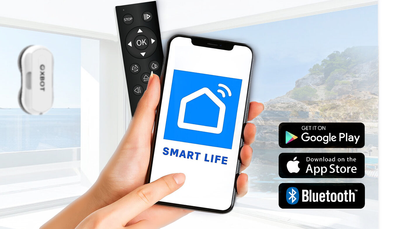 Xbot B20 выполнен в компактном корпусе белого цвета с чёрными элементами. Небольшая толщина 58 мм позволяет устройству работать на окнах и других гладких поверхностях без лишнего выступа, а вес менее 1 кг упрощает установку и перенос. Конструкция рассчитана на стабильную фиксацию на стекле при работе от сети.