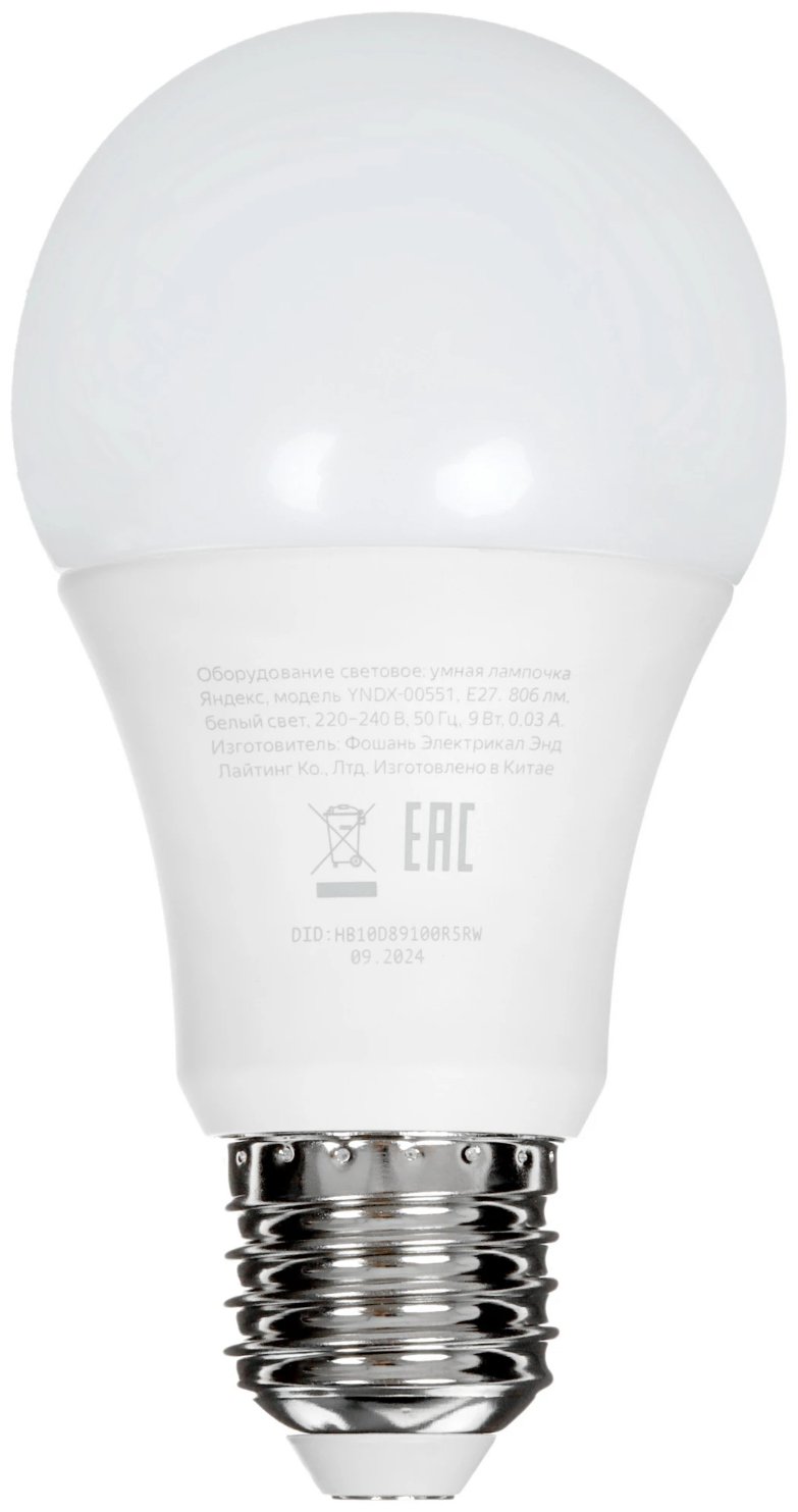 | Дополнительно | мощность 9 Вт, цветовая температура 2700-6500 К, световой поток до 806 лм, цоколь Е27 |